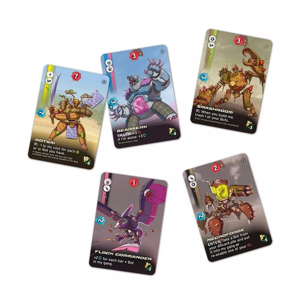 This 11-card pack includes two copies each of five new Bots (Smashroom, Flock Commander, Bearserk, Necroforge, and Botsai), and a card with rules and FAQs.