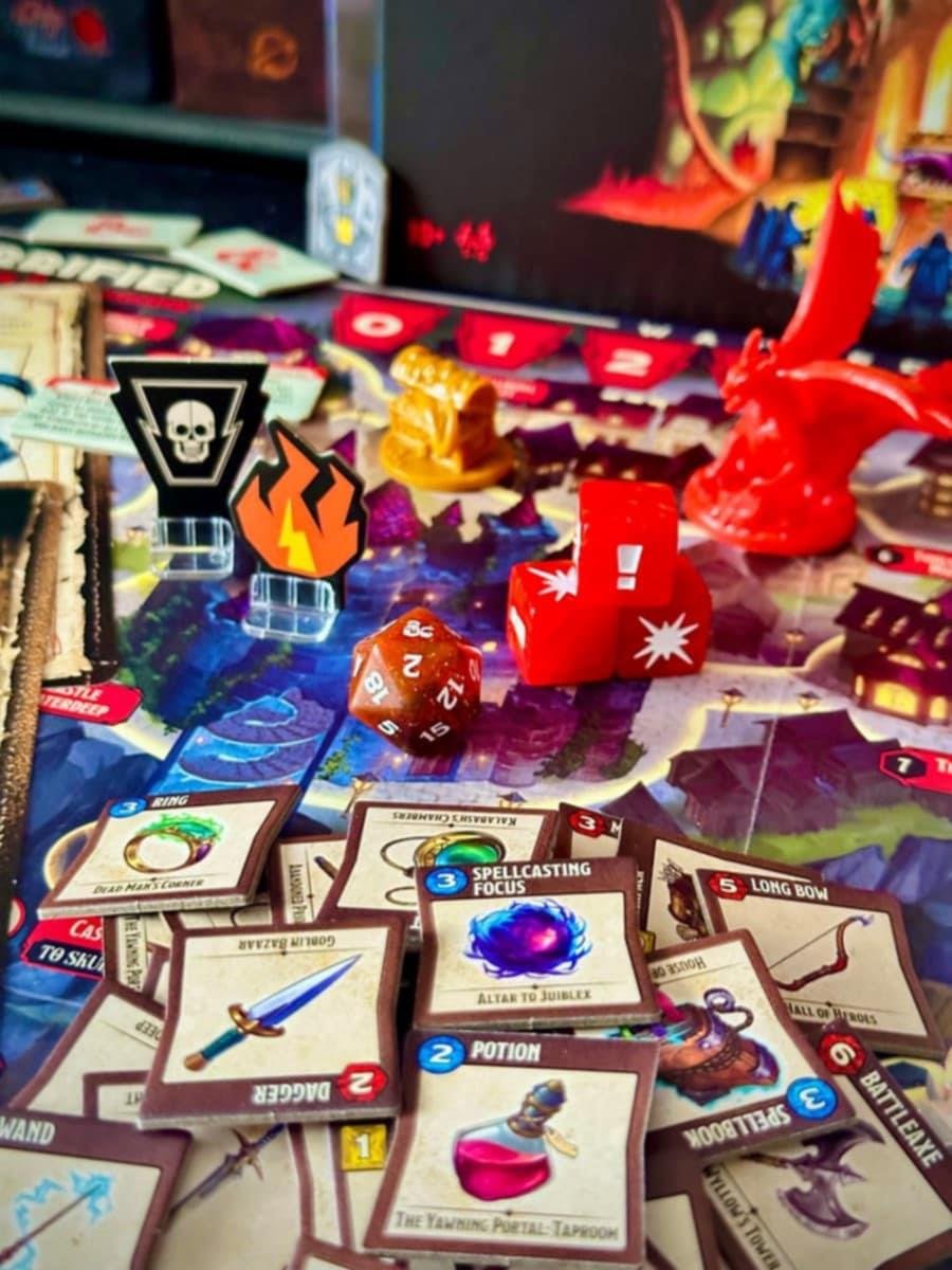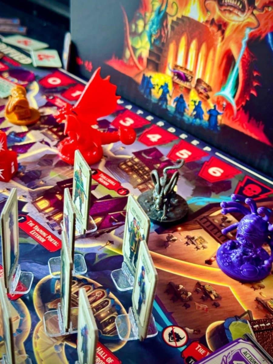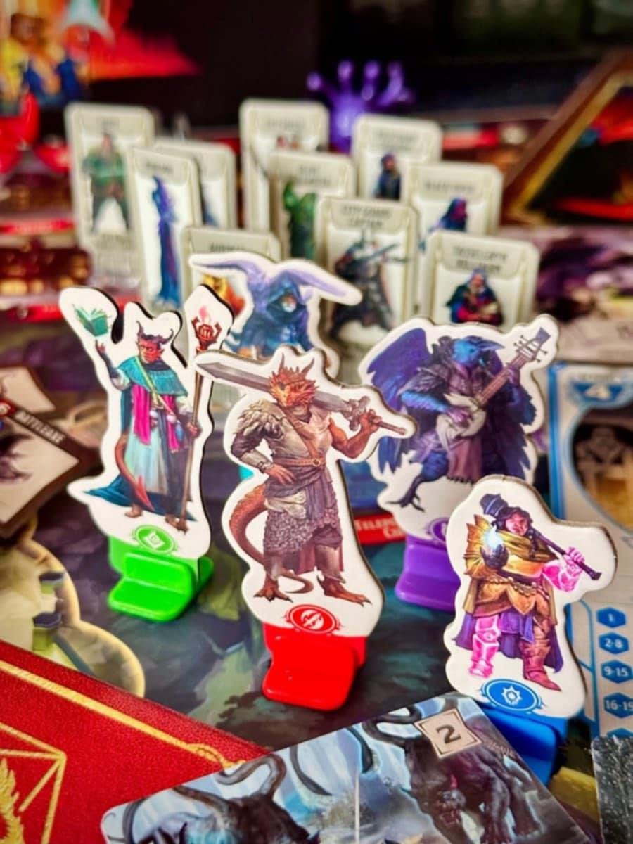 Horrified: Dungeons & Dragons features gameplay elements familiar to players of other games in the series: Players work together to face monsters and puzzle-like obstacles to gather item tokens, protect citizens, and avoid attacks. Unique and thematic challenges for each monster further immerse players into the detailed setting and story. Additionally, each player chooses to play as one of five heroes inspired by character classes from D&D: wizard, rogue, fighter, cleric, or bard — each with a unique set of abilities that can aid their party as they move around the board to defeat the monsters dwelling in the dungeon below Waterdeep.