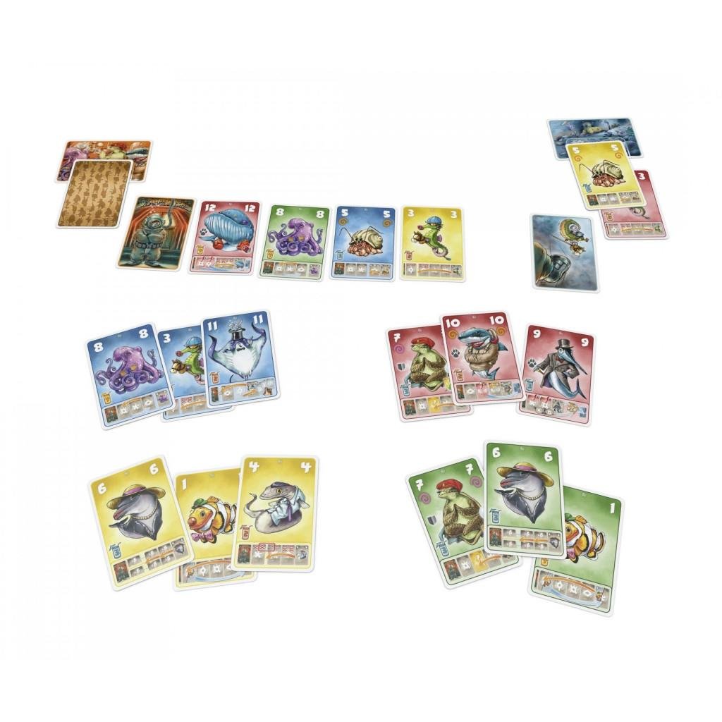 As in earlier Beasty Bar titles, which can be combined with this title, players take turns having their sea creatures line up at Heaven's Gate. If the line is full, the two animals at the front can make themselves comfortable in the bar, while the animal at the end of the queue has to go home again. That's why the animals use fishy tricks to push their way to the front. The magical manta ray uses a diversionary maneuver, while the eel squeezes unnoticed into even the smallest gap and the noble swordfish duels for a place.