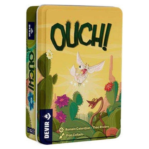 In Ouch!, players take turns choosing the cactus card with the prettiest flowers they want to bring over to their collection. Before taking the card, they need to indicate which side of the card they will touch, then flip it while handling only that edge of the card. If the reverse is clear on that side, they can take the card and score that number of flowers; if the reverse shows a cactus full of thorns, they lose the card.