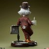 The polystone Howard the Duck Premium Format™ Figure measures 11" tall x 7" wide x 7.2" deep, inspired by his appearance in Marvel Comics. He wears a brown sculpted detective suit, complete with a cutout for his tail feathers. His angular portrait captures all the cranky yet charismatic energy of the short-statured sleuth, and paint details emphasize the sculpt of his plumage and unique webbed feet. And just like any good detective, be sure to break out your magnifying glass to catch all the Easter eggs hidden in the headlines of his newspaper.