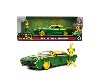 The God of Mischief inspires this classic 1963 Ford Thunderbird. Loki's bright green and gold chromed ride features premium paint and wheel rims as large as his ego. Opening doors, hood, trunk, and a detailed interior accompany a 2.75" 100% die-cast Loki figure wearing his signature horns. Collect all the Marvel inspired by die-cast vehicles with figures.