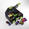 One side stores up to six double-sleeved Commander decks or 800 board game-sized cards, while the other includes 19 removable compartments in five sizes – perfect for tokens, dice, range tools, and more. Compatible with Gamegenic's Token Silo and add-ons for a fully modular setup.