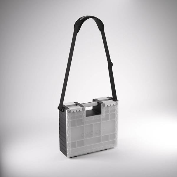 The Game Castle by Gamegenic in Black/Green is your all-in-one solution for securely storing and transporting trading cards, gaming accessories, and tabletop tools. Designed with convenience in mind, it features dual-sided access, removable compartments, and a detachable shoulder strap for easy carrying.
