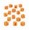 This is a set of 16 square-cornered six-sided dice for games of Warhammer 40,000, themed around the Aeldari. These dice are cast in orange plastic with dark red markings. The 1-5 facings are traditionally pipped, but each '6' face is instead decorated with an icon of the Aeldari.