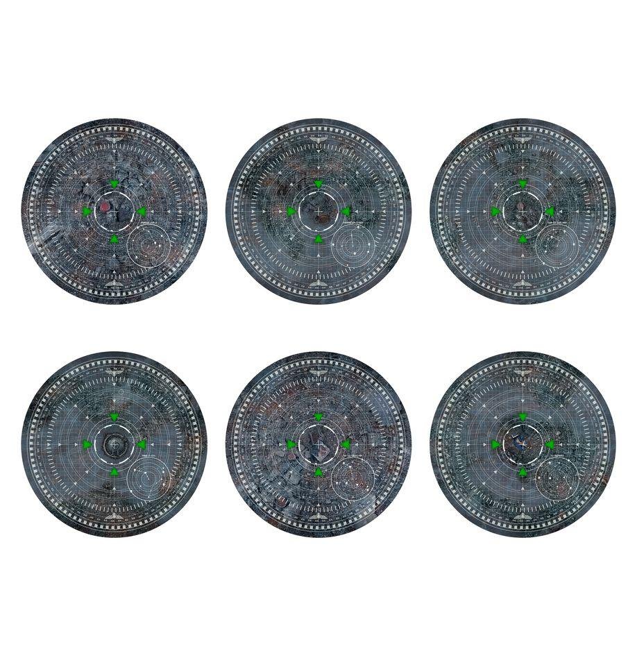 This set of six circular objective mats makes it simple to set up your games of Warhammer 40,000 – just lay them out on the board before the game begins for a streamlined, crystal-clear gaming experience. Each lays flat on your board, showing both the objectives of the mission and the scoring area to contest them. They feature artwork of a command overlay, a 40mm central objective, and a 3" circle around the outside.