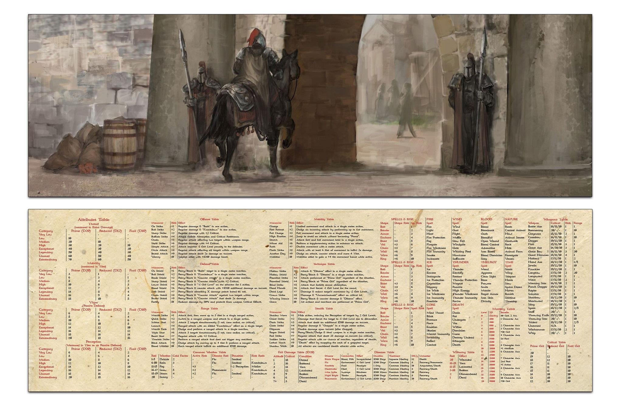 A 4-panel Game Master's Screen that features tables for quick reference.