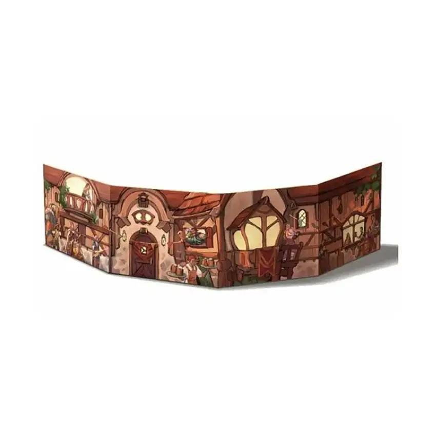 This GM screen has 4 panels of information for random encounters, prices, and quick info to help you navigate running a tavern! In addition to the standard function of a GM screen, the exterior art is a cute little tavern on its own! Fold up all 4 corners and put this tiny tavern on display between games. It also features a handful of ciphers and puzzles to further enrich your experience with Twisted Taverns!