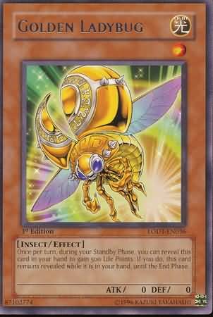 Monster Type: Insect Attribute: Light Set: Light of Destruction Level: 1 Card Number: LODT-EN036 Rarity: Rare Card Text: Once per turn, during your Standby Phase, you can reveal this card in your hand to gain 500 Life Points. If you do, this card remains revealed while it is in your hand, until the End Phase. ATK/DEF: 0/0 Card Type: Effect Monster