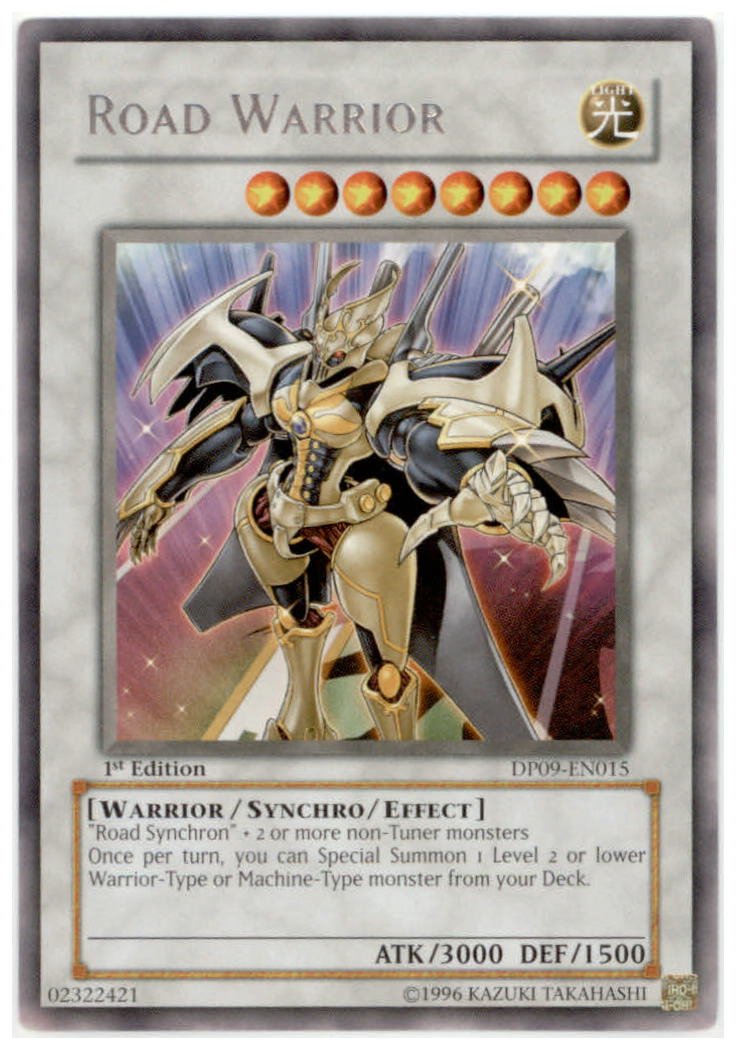 Set: Duelist Pack 9: Yusei Fudo 2 ATK/DEF: 3000/1500 Card Number: DP09-EN015 Monster Type:Warrior Rarity: Rare Attribute: Light Card Text: 'Road Synchron' + 2 or more non-Tuner Monsters. Once per turn, you can Special Summon 1 Level 2 or lower Warrior o