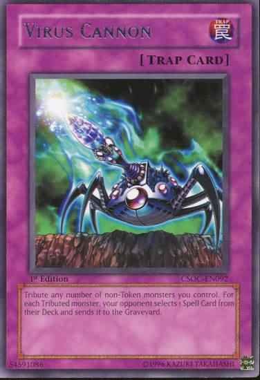 Card Type: Normal Trap Monster Type: Attribute: Trap Set: Crossroads of Chaos Level: Card Number: CSOC-EN092 Rarity: Rare Card Text: Tribute any number of non-Token monsters you control. For each Tributed monster, your opponent selects 1 Spell Card from their Deck and sends it to the Graveyard. ATK/DEF: