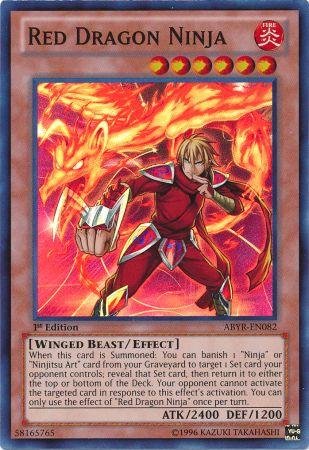 Set: Abyss Rising ATK/DEF: 2400/1200 Card Number: ABYR-EN082 Monster Type: Winged Beast Rarity: Super Rare Attribute: Fire Card Text: When this card is Summoned: You can banish 1 "Ninja" or "Ninjitsu Art" card from your Graveyard to target 1 Set card yo